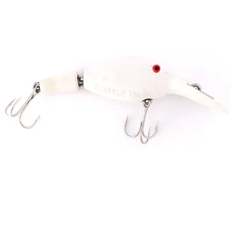 Šis 10 g (1/3 uncijos) kietas masalas yra visiškai padengtas baltais dažais, o ant jo šono aiškiai išspaustas „SPARKLE TAIL“ pavadinimas. Kilęs iš JAV, šis „Eppinger“ modelis (produkto kodas 10582) turi narnyrinį korpusą ir ryškų nėrimo liežuvėlį, techniškai priskiriamas suspenderiams (neutralaus plūdrumo masalams). 8 cm (3 1/4 colio) ilgio masalas skirtas tiek spiningavimui, tiek velkiavimui gaudant lašišas, ešerius, standartinius sterkus, upėtakius ir lydekas. Ryškiai raudona akis suteikia aštrų kontrastą švariai baltai apdailai, kuri išliko puikiai išsaugota. Būklė vertinama 5/5, du trišakiai kabliukai ir narnyrinis mechanizmas yra puikios, darbinės būklės.