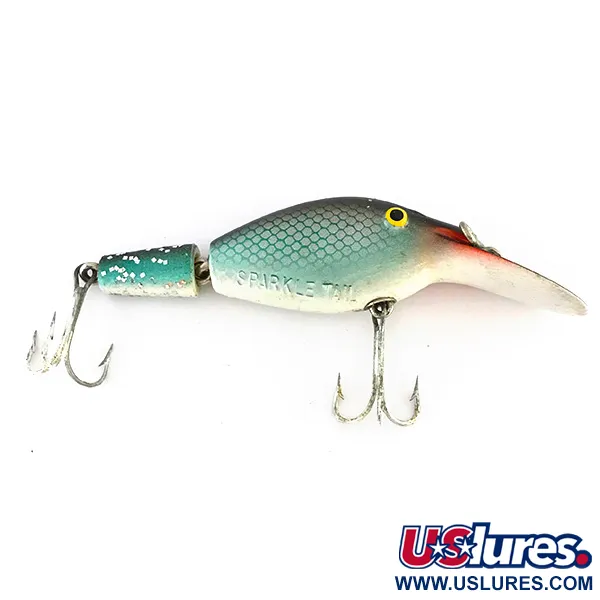 Šis 8 cm (3 1/4 colio) ilgio Eppinger narnis su jungtimi pasižymi išskirtiniu pilkos ir šviesiai mėlynos spalvos žvynų raštu ant kreminio balto pilvelio. 10 g (1/3 oz) svoris daro jį universaliu pasirinkimu tiek spiningavimui, tiek velkiavimui gaudant lydekas, starkius ar upėtakius. Paženklintas produkto kodu 8108, masalas turi šone aiškiai įspaustą pavadinimą „SPARKLE TAIL“, kurį pateisina blizgučiais užpildyta uodegos dalis. Ryškiai raudonas akcentas pabrėžia priekinę dalį prie metalinio liežuvėlio, o dizainą papildo klasikinės geltonos akys. Šis JAV gamybos egzempliorius yra 5/5 būklės, pasižymi itin švariais dažais ir originalia furnitūra. Jungtis tarp korpuso ir uodegos sutvirtinta tvirtomis metalinėmis kilpomis, užtikrinančiomis šio vintažinio radinio konstrukcijos vientisumą.