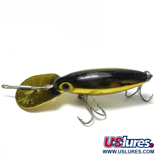 Auksinis metalizuotas paviršius suteikia šiam 5 cm ilgio vintažiniam radiniui nesenstančio žavesio, ypač derinant jį su didelio kontrasto juoda juosta nugaroje. Šis Storm Hot'N Tot, žymimas produkto kodu 0104, atspindi Thin Fin serijos, originaliai gamintos JAV, meistriškumą. 6,5 g svorio vobleris turi firminį metalinį liežuvėlį, sukurtą stabilumui velkiaujant ar dreifuojant įvairiose srovėse. Geltonos akys su ryškiais juodais vyzdžiais sukuria išskirtinį akcentą atspindinčiame auksiniame korpuse. Tiek trišakiai kabliukai, tiek liežuvėlio jungtis pagaminti iš patvarios furnitūros, atitinkančios šio egzemplioriaus 4/5 būklę. Nors daugelis vėlesnių modelių perėjo prie plastikinių komponentų, šio modelio integruotas metalinis liežuvėlis išlieka kolekcininkų, vertinančių tradicinę gamybą ir specifines judėjimo savybes, favoritas.