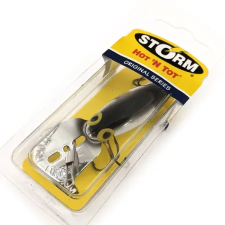 Metalinio sidabro žvynai kontrastuoja su vientisa juoda nugara šiame 5 cm (2") „Storm Original Hot'N Tot“. Šis „Original Series“ serijos modelis pasižymi klasikininiu metaliniu liežuvėliu, leidžiančiu pasiekti 1,5 m – 4,0 m (5–13 pėdų) gylį. Šis konkretus masalas, kurio prekės kodas H103 (vidinė duomenų bazė 12897), yra 6,5 g (1/4 oz) modelis, dažnai naudojamas velkiavimui, spiningavimui ar dreifavimui. Pagaminta Indonezijoje, konstrukcijoje naudojami kokybiški VMC kabliukai ir išskirtinės padidintos geltonos akys su juodais vyzdžiais. Pakuotė pažymėta 2012 m. autorių teisėmis, o spalva nurodyta kaip „MET SLV/BLK BACK“. Šis masalas yra nenaudotas, originalioje skaidrioje pakuotėje su geltona „Think Like A Fish“ kortele. Įspaustas metalinis liežuvėlis tvirtai pritvirtintas, pabrėžiant patvarumą, būdingą šiai specializuotai giliavandenei konstrukcijai.