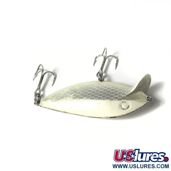 Išskirtinis korių raštas apibūdina šio vintažinio Storm Original Thin Fin „Silver White“ apdailą, reprezentuojančią klasikinę Amerikos žūklės įrankių dizaino erą. 7 cm (2 3/4") ilgio ir 5,5 g (3/16 oz) svorio modelis (kodas 0034) turi plokščią profilį, skirtą velkiavimui ir dreifavimui. Apdaila turi švelnių amžiaus ženklų, todėl būklė vertinama 4/5, o sidabrinis žvynų raštas išlaiko savo pradinį ryškumą. Pagamintas JAV, korpusas turi originalius trišakius kabliukus ir specializuotą liežuvėlį, skirtą išlaikyti stabilumą net esant stipriai srovei. Šis liežuvėlis leidžia masalui judėti iš vienos pusės į kitą, imituojant natūralų grobį. Prie liežuvėlio kraštų matomas nedidelis dažų nusitrynimas, liudijantis jo, kaip funkcionalaus žūklės įrankio, istoriją.