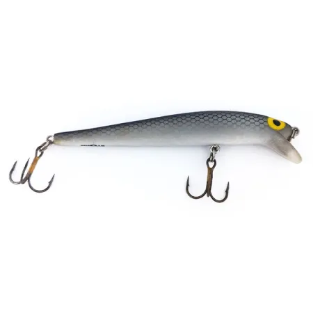 Šis 9 cm (3 1/2") Storm Thunder Stick, papuoštas klasikiniu korių rašto žvynelių raštu ant nugaros, demonstruoja kruopštų senosios JAV gamybos meistriškumą. Silver spalvinė gama pereina į baltą pilvelį, o didelės geltonos akys sukuria ryškų kontrastą tokiems plėšrūnams kaip lydekos, starkiai ir upėtakiai. Šis konkretus pavyzdys turi produkto kodą 10739 ir yra puikios būklės, vertinamas 5/5. 7 g (1/4 oz) svorio masalas yra subalansuotas spiningavimui ir turi skaidrų liežuvėlį, pritaikytą 0,3 - 1,5 m (1 - 5 ft) gyliui. Masalas turi du originalius trišakius kabliukus, pritvirtintus tvirtais žiedeliais, kurie išlaiko grakštų minnow profilį. Šis plaukiantis masalas atstovauja laikotarpį, kai Storm orientavosi į patvarias, paprastas konstrukcijas efektyviam žūklavimui sekliuose vandenyse.