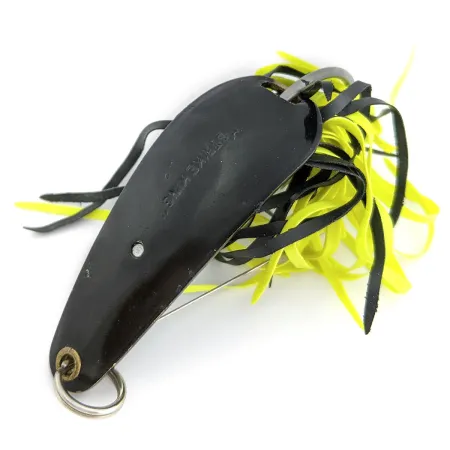 14 g svorio Strike King Timber King yra klasikinė žolėms atspari vartiklė, tapusi Amerikos žvejybos įrankių istorijos dalimi. Šis 5,5 cm ilgio masalas (prekės kodas 17998) pasižymi juodos spalvos metaliniu korpusu, kurį papildo kontrastingas juodos ir geltonos spalvų guminių siūlų sijonėlis. 1979 metais pristatytas modelis buvo sukurtas stambių lydekų ir ešerių žūklei didžiausiose kerpėse – tuo metu gamintojas skyrė ypatingą dėmesį specializuotiems įrankiams, skirtiems žvejybai kliuviniuose. Konstrukciją sudaro tvirtas vienšakis kablys su integruota vieline apsauga nuo žolių, užtikrinančia sklandų praėjimą per tankią augmeniją neužkliūvant. Šis egzempliorius yra puikios 5/5 būklės, tiek vartiklės paviršius, tiek tvirtas jungiamasis žiedelis išliko nepriekaištingi. Jau seniai nebegaminamas, JAV pagamintas retas masalas yra funkcionalus aštuntojo dešimtmečio pabaigos žūklės paveldo pavyzdys.
