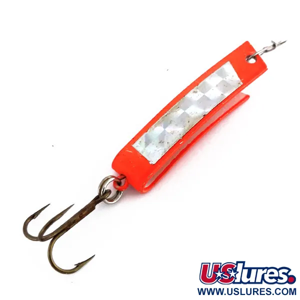 Fluorescenciniai oranžiniai dažai dengia šio 4,5 cm ilgio masalo U formos korpusą, užtikrindami puikų matomumą įvairiomis vandens sąlygomis. 7 g sveriantis Super-Duper 506 UV (produkto kodas: 9851) pasižymi firminiu prizminės juostos įdėklu, sukuriančiu daugiakampį blyksnį. Šis konkretus South Bend modelis pasižymi UV reaktyvumu, todėl masalas stipriai švyti veikiamas ultravioletinių spindulių. Masalo pagrindą sudaro viena sulenkto metalo dalis – tai JAV gaminamos Super-Duper linijos, skirtos universaliam spiningavimui ir velkiavimui, išskirtinumas. Galinėje dalyje tvirtu žiedeliu pritvirtintas trišakis kabliukas, o priekinė tvirtinimo anga yra paprasta, švariai pradurta skylė. Masalas įvertintas 5/5, jo būklė puiki, nėra matomų fluorescencinės dangos ar holografinio įdėklo nusidėvėjimo žymių. Metalinė U forma sukurta taip, kad išlaikytų konstrukcijos vientisumą kibimo metu ir tuo pačiu išliktų siauro profilio.