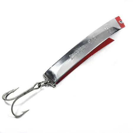 Nikeliuotas paviršius, pabrėžtas ryškiai raudona vidine dalimi, suteikia šiai 8,5 cm (3 1/4") South Bend Super-Duper 516 blizgei išskirtinę, kontrastingą išvaizdą. Ši ikoniška sulenkto metalo konstrukcija, kataloguojama prekės kodu 0864, atspindi South Bend Bait Company vidurio amžiaus Amerikos gamybos stilių. Išorinis nikelio paviršius aiškiai pažymėtas modelio pavadinimu ir numeriu, demonstruojant meistriškumą, būdingą senovinei JAV pagamintai įrangai. Ši 18 g (2/3 oz) svorio blizgė su tvirtu trišakiu kabliuku uodegoje yra pakankamai masyvi tiek metimui, tiek velkiavimui įvairiomis sąlygomis. Raudoni dažai ant vidinio išlinkimo sukuria klasikinį dvispalvį vaizdą, kurį kolekcininkai vertina būtent šiuose modeliuose. Būklės įvertinimas 4/5 nurodo puikiai išlaikytą egzempliorių su blizgia apdaila ir patikima furnitūra, kuri per dešimtmečius paseno itin grakščiai.