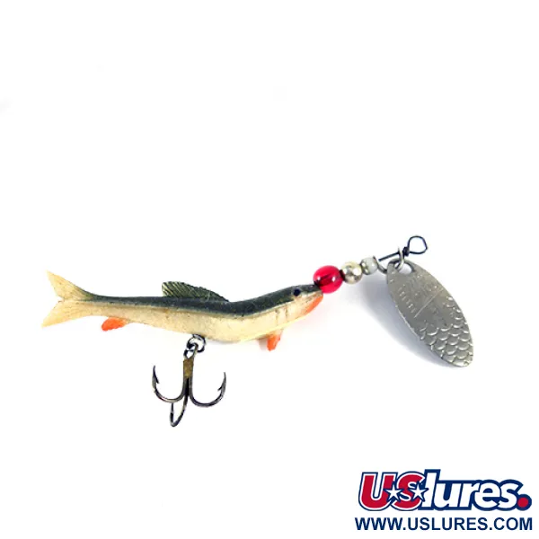 Štampuotas nikelio lapelis su įspaudu „SWISS SWING 1“ puošia šį unikalų „Renosky Lures“ masalą (prekės kodas 1545). 3/32 oz (2,5 g) sveriantis masalas apjungia tradicinę sukrę su detaliu minkšto plastiko žuvelės kūnu, kurio bendras ilgis siekia 2 1/4" (6 cm). „Nickel“ spalvinė gama natūraliai imituoja mailių su tamsia nugara ir šviesiu pilveliu. Karoliukų seka — vienas ryškiai raudonas ir du metaliniai — skiria lapelio laikiklį nuo žuvelės formos kūno. Lengvų įrankių mėgėjams po pilvu sumontuotas vienas trišakis kablys. Šis egzempliorius yra 5/5 būklės, išlaikęs itin švarią metalinių dalių apdailą ir elastingą kūno tekstūrą.