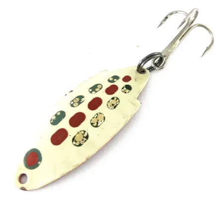 4,5 cm (1 3/4 colio) ilgio štampuotas metalinis šio Thomas Buoyant masalo korpusas pasižymi klasikinio „kuproto“ profilio forma, dėl kurios jis ištisas kartas yra pagrindinis upėtakių dėžučių elementas. Priekinėje pusėje matoma Balta / Raudona spalvų schema: kreminis pagrindas, dekoruotas raudonų, tamsiai žalių ir auksinių taškelių seka. Apvertus masalą, kitoje pusėje matoma vientisa raudona apdaila, suteikianti didelį vizualinį kontrastą žuvims, sekančioms masalą iš apačios. Įvertinta 4/5, apdaila yra stebėtinai švari, matomos tik minimalios amžiaus žymės. 7 g (1/4 oz) svoris idealiai tinka tiksliems metimams į maitinimosi sroves. Šis JAV pagamintas egzempliorius, kataloguojamas prekės kodu 9509, turi originalų trišakį kabliuką ir žiedelį.