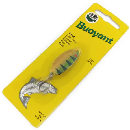 Ši 3/16 oz (5 g) vartiklė pasižymi klasikiniu „Fire Tiger“ spalvinimu ant štampuoto metalinio korpuso. „Thomas Spinning Lures“ dešimtmečius išlieka Amerikos gamybos simboliu, ką patvirtina „Made in U.S.A.“ žyma ant ryškiai geltonos pakuotės. 1 1/2" (4 cm) metalinis lapelis turi ryškų geltono aukso pagrindą su tamsiai žaliais vertikaliais dryžiais ir raudonu tašku, imituojančiu mailių. Šis egzempliorius turi gaminio kodą 9745 ir yra originalioje mažmeninės prekybos pakuotėje. Masalas nenaudotas, nors vintažinė pakuotė turi sandėliavimo žymių ir oranžinį pardavėjo lipduką kitoje pusėje. Skirta įvairioms žuvų rūšims, pakuotėje nurodyti upėtakiai, lašišos ir starkiai kaip pagrindiniai šio masalo taikiniai.