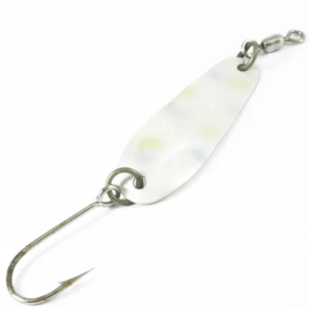 Ši Luhr Jensen Tom Mack, papuošta subtilia Pearl apdaila su švelniais pasteliniais akcentais, yra klasikinis amerikietiškos velkiavimo įrangos pavyzdys. 2 1/2" (6,5 cm) dydžio ir 1/4 oz (8 g) svorio vartiklės lašo formos profilis pritaikytas žvejybai giliuose vandenyse, kur matomumas yra itin svarbus. Šis egzempliorius, pažymėtas prekės kodu 3339, turi originalią komplektaciją: suktuką ir vienšakį „siwash“ tipo kabliuką. Pagaminta JAV, o metalo apdirbimas pasižymi švariu štampavimu, būdingu prekės ženklo paveldui iš Hood River. Paviršius gerai išsilaikęs (būklė 4/5), išlaikantis perlamutrinės dangos spindesį. Žiedeliai išlieka tvirti ir funkcionalūs, patikimai jungiantys kabliuką ir suktuką su štampuotu masalo korpusu.