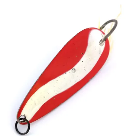 Banguotas raudonai baltas emalio raštas puošia šios nikeliuotos vartiklės iškilųjį šoną – toks dizainas asocijuojasi su vidurio amžiaus Amerikos žvejyba. Ši Tony Accetta Weed Doger (kodas 10607) sveria 1/3oz (10g) ir yra 2 1/4" (5,5cm) ilgio. Įgaubtoje pusėje matoma aiški, štampuota „TONY ACCETTA“ prekės ženklo žymė ir vienšakis kablys su geltonų plunksnų uodegėle, pritvirtinta raudonu siūlu. Žvejybai tankioje augalijoje palengvinti masalas turi vielinę apsaugą nuo žolių. 4/5 būklės vartiklė turi nežymių naudojimo žymių, liudijančių jos istoriją, tačiau metalas išlieka blizgus, o dažai – ryškūs. Prie priekinės kilputės pritvirtintas paprastas juodas žiedelis valui rišti.