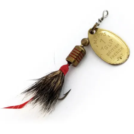 Muziejaus archyvas: Mepps Aglia 1 dressed (squirrel tail) 1970s Sukrė, Aukso, 3.5g, #9912