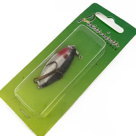 Ši 11 g (2/5 oz) svorio pilkerio tipo blizgė yra kompaktiškas 4,5 cm (1 3/4") masalas, skirtas vertikaliam džigavimui. Wahoo Key Largo Swim'n Fin, kurio prekės kodas 16730, pasižymi klasikiniu sidabrinės ir juodos spalvų deriniu, kurį papildo ryškiai raudona galva bei akcentuotos akys. Tai specializuotas įrankis, pagamintas Dominikos Respublikoje naudojant aukštos kokybės JAV kilmės komponentus, specialiai sukurtas sterkų ir lydekų žūklei. Kūno viduje yra triukšmo kapsulė, skirta skleisti garsinį signalą masalui judant. Šis egzempliorius yra nenaudotas ir išsaugotas originalioje žalioje „Premium Tackle“ pakuotėje. Vienas trišakis kablys, pritvirtintas per jungiamąjį žiedelį, turi nedidelių metalo paviršiaus oksidacijos žymių, tačiau pats masalo korpusas išlaikė gamyklinį dažų sluoksnį.