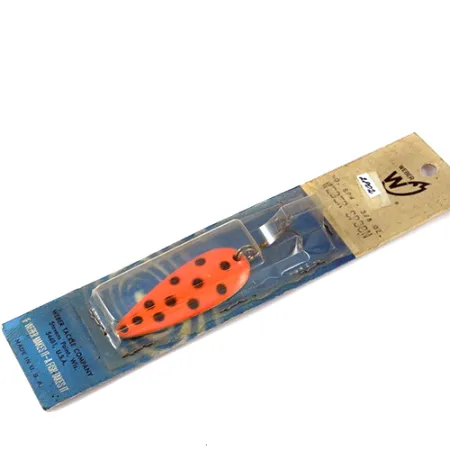 Ryškus raudonai/juodas taškuotas raštas iškart identifikuoja šią Weber Spoon kaip vidurio amžiaus klasiką iš Stivens Pointo, Viskonsino valstijoje įsikūrusios „Weber Tackle Company“. Šis žūklės istorijos pavyzdys, sveriantis 11 g (2/5 oz) ir esantis 6 cm (2 1/4") ilgio, yra kataloguojamas produkto kodu 2802. Masalas yra nenaudotas, pritvirtintas originalioje mėlynos ir smėlio spalvos pakuotėje su šūkiu „Weber Makes It—A Fish Takes It“. Nors furnitūra ir apdaila yra švarios, senovinėje pakuotėje matomos nedidelės laikymo žymės, atitinkančios jos amžių. Paprasta lašo formos geometrija ir gale sumontuotas trišakis kabliukas buvo sukurti universalumui tiek spiningaujant, tiek velkiaujant. Šis nebegaminamas egzempliorius yra apčiuopiama sąsaja su vieno žinomiausių JAV žūklės reikmenų gamintojų paveldu.
