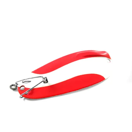 Nikeliuotas paviršius sudaro pagrindą šiai Suomijoje pagamintai 7 g (1/4oz) blizgei, suteikdamas didelio kontrasto pagrindą ryškiai raudonai ir baltai viršutinei daliai. Kitoje pusėje aiškiai išspaustas Scorpion prekės ženklas kartu su užrašu „Made in Finland“ ir JAV patentu 3048938, nurodančiu, kad tai specializuotas nežuoliuojantis masalas. Šis egzempliorius, kurio gaminio kodas 1863, turi vielinę apsaugą, skirtą paslėpti kabliuko geluonį metant per lelijas ar tankius vandens augalus. 5 cm (2") ilgio metalinis korpusas išlaikytas 4/5 būklės, paviršius atrodo ryškus ir nepažeistas. Konstrukcija apima integruotą segtuką tiesiai prie nosies, užtikrinantį saugų sujungimą techniniam žūklės būdui tankioje augmenijoje.