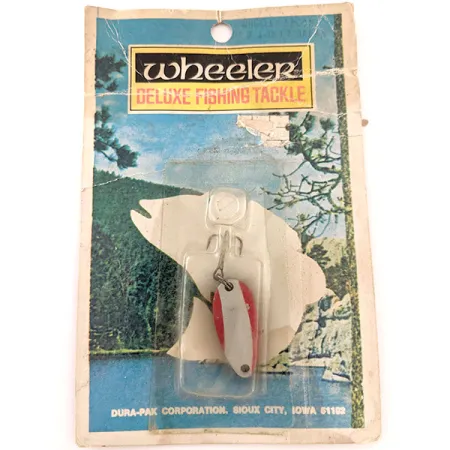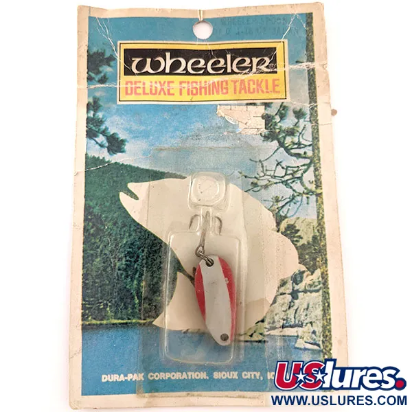 Šis Japonijoje pagamintas vintažinis radinys pasižymi ryškia raudonai balta apdaila ir yra 3,5 cm (1 1/2") ilgio. 5 g (3/16 oz) svorio Wheeler Spoon modelis atspindi Dura-Pak Corporation iš Sioux City, Ajovos valstijos, platinimo erą. Eksponatas kataloguojamas numeriu 12101 ir yra išsaugotas originalioje pakuotėje, saugančioje dažus bei sidabro spalvos detales. Kadangi būklė įvertinta 6 balais, masalas yra nenaudotas ir atrodo taip pat, kaip ką tik iš gamyklos. Pakuotės kortelėje pavaizduotas nostalgiškas kraštovaizdis, būdingas Wheeler Deluxe Fishing Tackle linijai. Tvirtas jungiamasis žiedelis jungia metalinę blisgę su kabliuku, užtikrindamas patikimumą tiek spiningaujant, tiek velkiaujant.