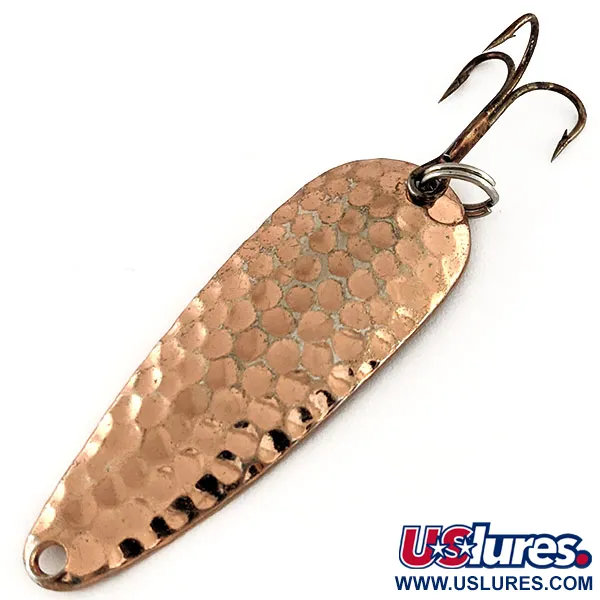 Šios 2 1/4" (6 cm) vartiklės paviršiaus kalybos tekstūra sukurta sklaidyti šviesą visomis kryptimis. Acme Wonderlure (kodas 12252) yra klasikinė JAV gamybos vartiklė. Lašo formos korpusas pagamintas iš vario, o lygioje kitoje pusėje aiškiai matomas „WONDERLURE“ įspaudas. 11 g (2/5 oz) svoris leidžia atlikti tolimus metimus nuo kranto ar iš valties. Tvirtas žiedelis laiko bronzuotą trišakį kabliuką, o platesniame gale yra anga valui tvirtinti. Būklė vertinama 5/5 – kalybos raštas ir metalo vientisumas išlikę nepriekaištingai. Ilga Acme gamybos JAV istorija atsispindi įspaudo kokybėje ir vario ruošinio storyje.