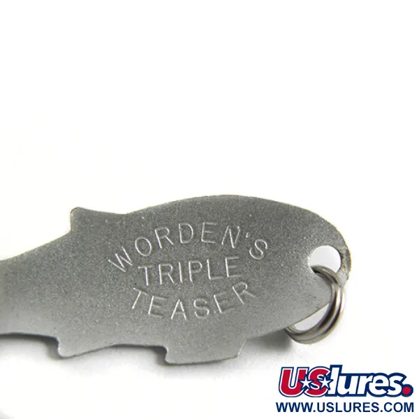 Šis itin lengvas, vos 1,3 g (3/64 oz) sveriantis masalas yra puikus Yakima Bait meistriškumo pavyzdys iš JAV. Frog raštas ant šios 3 cm (1 1/4") blizgės pasižymi trimis kontrastingais geltonais apskritimais tamsiais viduriais, kurie ryškiai išsiskiria tamsiai žalio žuvies formos kūno fone. Kitoje pusėje poliruoto sidabro paviršius yra aiškiai pažymėtas "Worden's Triple Teaser" įspaudu. Šis konkretus egzempliorius, pažymėtas kodu 1293, įvertintas 5/5 būkle. Masalas sukomplektuotas su vienu kabliuku, pritvirtintu per žiedelį uodegoje, o priekyje yra žiedelis tiesioginiam valo tvirtinimui. Tokia konstrukcija skirta finesse žūklei arba lengvam velkiavimui gaudant upėtakius ir ešerines žuvis. Įspaustas metalo profilis turi subtilių detalių, pavyzdžiui, pakeltą nugaros peleką, kuris suteikia tikroviškumo mažam siluetui.