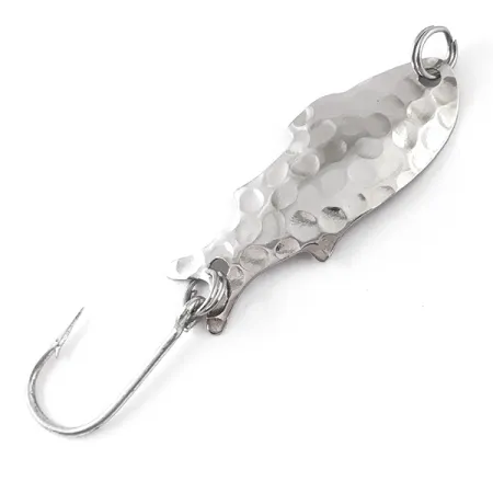 Kaltas nikelis, kaip ir šio 1/16 oz (2,2 g) Yakima Bait egzemplioriaus apdaila, buvo sukurtas sukurti sudėtingus šviesos atspindžius įvairiomis vandens sąlygomis. Ši Worden's Tripple Teaser, kataloguojama prekės kodu 4838, yra klasikinė JAV gamybos blystė, kurios ilgis tiksliai 1 1/2" (4 cm). Išgaubta pusė pasižymi giliomis, apskritomis duobutėmis, o įgaubtas vidus yra lygus ir pažymėtas ryškiu "Worden's Triple Teaser" spaudu. Ji komplektuojama su vienšakiu kabliu, pritvirtintu per žiedelį – tokia konfigūracija dažnai pasirenkama siekiant lengviau paleisti žuvį žvejojant upėtakius ar ešerines žuvis. Furnitūra, įskaitant valo tvirtinimo žiedelį, yra puikios būklės. Įvertintas 5/5, metalas pasižymi ryškiu, švariu blizgesiu abiejose pusėse. Šis JAV pagamintas masalas yra puikus paprastos, bet efektyvios Yakima Bait produkcijos pavyzdys.