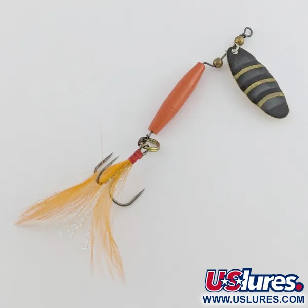 Ryškus oranžinis-raudonas cigaros formos korpusas laiko šią klasikinę sukrę, atspindinčią „Worth Company“, įsikūrusios Stivenso Pointe, Viskonsine, gamybos meistriškumą. Kadangi „Worth“ garsėja kaip aukščiausios klasės komponentų, tokių kaip žiedeliai ir suktukai, tiekėja visai žūklės pramonei, galutinis masalas, toks kaip šis #301 (produkto kodas 24436), demonstruoja jų tikslią furnitūrą pilname komplekte. Lašo formos lapelis pasižymi įspūdinga juoda priekine puse su auksinėmis banguotomis juostelėmis, o kitoje pusėje matoma kalto aukso tekstūra. Šis egzempliorius, kurio būklė įvertinta 5/5, turi trišakį kabliuką, papuoštą oranžinėmis ir geltonomis plunksnomis, kurios pritvirtintos tvarkinga raudonų siūlų apvija. Surinkimui naudojami maži žalvario karoliukai ir specializuotas lankelis, palengvinantis sklandų sukimąsi traukiant masalą gėlo vandens telkiniuose žvejojant upėtakius ar ešerius. Tai puikus vidurio amžiaus Amerikos meistriškumo pavyzdys iš paties Vidurio Vakarų centro.