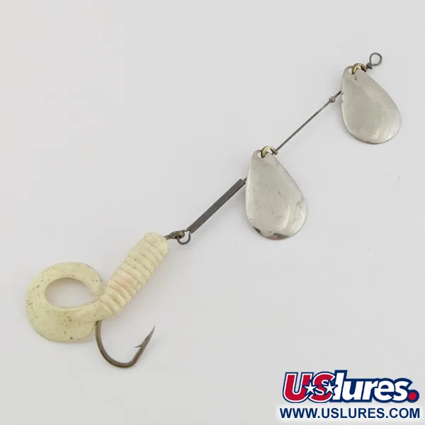 Du nikliuoti lašo formos lapeliai pasižymi viršutine šios sistemos dalimi, užtikrinančia nuolatinį blyksėjimą tolygiai traukiant. 13 cm (5 colių) bendro ilgio ir 5 g (3/16 uncijos) svorio sistema puikiai tinka žvejybai lengvais įrankiais arba velkiavimui gėluose vandenyse. Lapelių nikelio apdaila derinama su baltu twisteriu, turinčiu subtilių sidabrinių blizgučių, kurie suteikia papildomo vizualinio patrauklumo. Raudoni atraktoriaus karoliukai yra išdėstyti ant vielinio rėmo, kad lapeliai būtų tinkamu atstumu ir sukurtų taikinį prie lankelių. Vienas kabliukas apginkluotas rievėta minkšto plastiko uodegėle, kuri pritvirtinta prie rėmo tvirta vielos kilpa. Gamintojas Worth pagamino šiuos komponentus su paprasta kilpele galvutėje, skirta tiesioginiam valo tvirtinimui arba naudojimui su nedideliu segtuku. Bendra būklė įvertinta 5/5, metaliniai paviršiai švarūs, o plastikas lankstus. Ši specifinė konfigūracija, įtraukta į katalogą produkto kodu 24502, pabrėžia klasikinio dizaino sukrės moduliškumą.