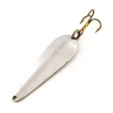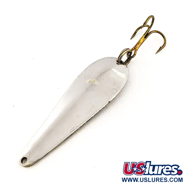 Išgraviruotas tiesiai ant poliruoto paviršiaus, Wright & McGill vardas ženklina Amerikos žvejybos istoriją iš Denverio, Kolorado. Blizgi nikelio danga dengia 4,5 cm (1 3/4") lašo formos Streamliner korpusą, pažymėtą prekės kodu 11641. Šone įspaustas modelis ir 7 g (1/4 oz) svoris, užtikrinantis aiškų vaizdą kolekcininkui ar žvejui. Originalus bronzinio atspalvio trišakis kablys saugiai pritvirtintas žiedeliu, o švari išvaizda atitinka 5/5 būklės įvertinimą. Su viena anga siaurajame gale valui tvirtinti, šis aptakus metalinis profilis yra skirtas spiningavimui ar velčiavimui įvairiomis vandens sąlygomis.