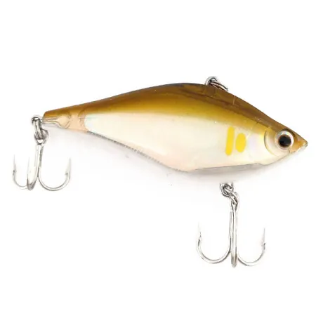 Tiksliai 6 cm (2 1/4") ilgio Japonijoje pagaminto masalo vidinė prizmės struktūra sukuria tikrovišką gylio pojūtį žiūrint bet kuriuo kampu. Šis „Yo-Zuri 3D VIB“, kurio prekės kodas 9777, yra rafinuotas prekės ženklo inžinerijos pavyzdys, sveriantis 12 g (2/5 oz), kas užtikrina efektyvų metimą ir skendimą įvairiuose gyliuose. Puiki būklė pabrėžia permatomo korpuso vientisumą, kuris pereina nuo sodrios bronzinės-auksinės nugarėlės iki perlamutrinių šonų su dviem ryškiais geltonais vertikaliais dryžiais. Masalas sukonstruotas kaip vibracinis arba „rattlin“ tipo su triukšmo kapsule. Komplektacijoje yra du sidabrinės apdailos trišakiai kabliukai ir tvirti žiedeliai, skirti patikimam pakirtimui gaudant tokias žuvis kaip starkis, ešerys ar lydeka. Šviesą lūžtančios savybės dar labiau sustiprinamos smulkiu žvynelių raštu, išlietu tiesiai ant vidinių skaidraus plastiko sienelių paviršių.