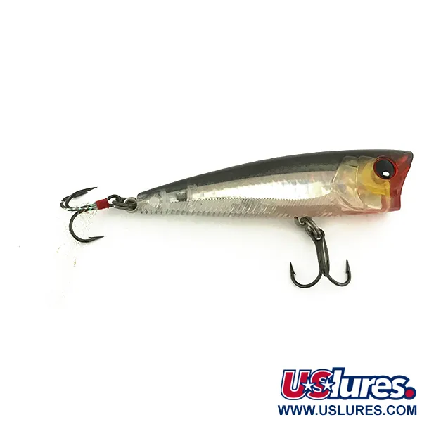 Šis 7,5 cm (3") ilgio Japonijoje pagamintas paviršinis masalas pasižymi išskirtine įgaubta raudona burna, skirta žvejybai pačiame vandens paviršiuje (0 m). 10 g (1/3 oz) sveriantis Yo-Zuri 3DB Popper, žymimas prekės kodu 6967, pasižymi prekės ženklui būdinga vidine 3D prizmės apdaila, kuri atspindi šviesą per skaidrų korpusą. Tamsiai anglies spalvos nugara kontrastuoja su skaidriais šonais, o ryškiai geltoni akcentai pabrėžia dideles, realistiškas akis. Šis Japonijoje pagamintas modelis yra puikios 5/5 būklės, su aštriais juodo nikelio trišakiais kabliukais. Galinis kabliukas turi subtilų raudonos ir žalios spalvos puošmeną – detalę, kurią dažnai mėgsta žvejai, gaudantys ešerius, lydekas ar salatinius bolenus. Per skaidrų plastikinį korpusą matomos vidinės briaunos suteikia Duel/Yo-Zuri serijai būdingą konstrukcinį sudėtingumą.
