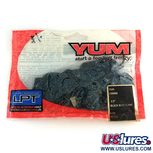 Matomi mėlyni blizgučiai tamsiame pagrinde apibūdina šiems 3 1/2" (9 cm) minkšto plastiko priedams (trailers) būdingą Crawdad spalvą. Šią pakuotę, žymimą produkto kodu 9656, sudaro aštuoni masalai, esantys originaliame raudonai baltame gamykliniame maišelyje. Kiekvienas egzempliorius pasižymi plačiu kūnu, dvejomis plokščiomis žnyplėmis ir dvejomis mažesnėmis kojelėmis, skirtomis naudoti kaip džigo priedą arba „flipping“ technikai. Šiuose masaluose naudojama „YUM Belle Company“ sukurta „Live Prey Technology“ (LPT) – 2000-ųjų pradžios inovacija iš Fort Smito (Arkanzasas), į plastiką įterpianti druską ir fermentus. Masalai yra nenaudoti, išlaikę originalią baltos druskos dangą ir minkšto plastiko lankstumą visuose segmentuose.